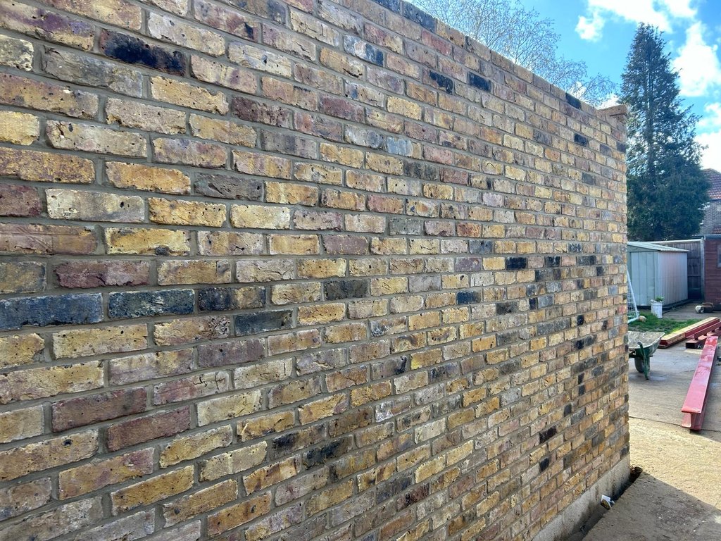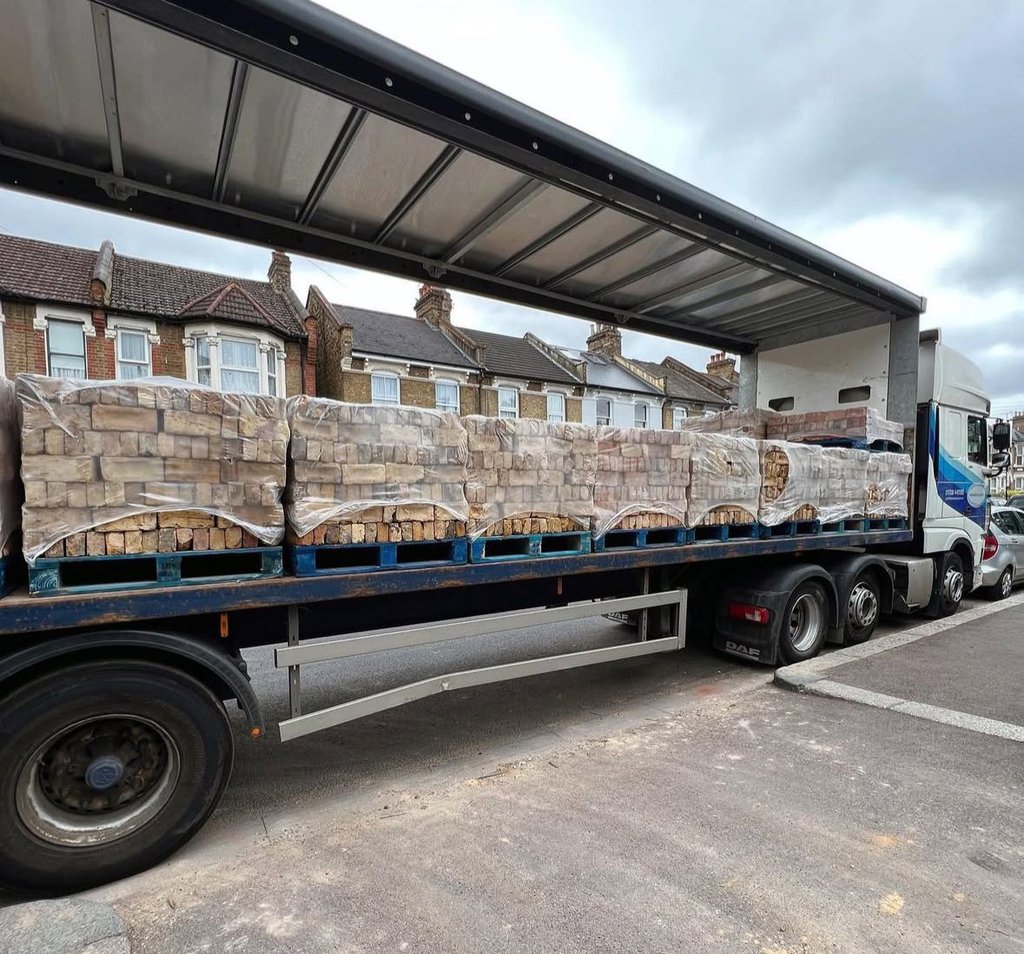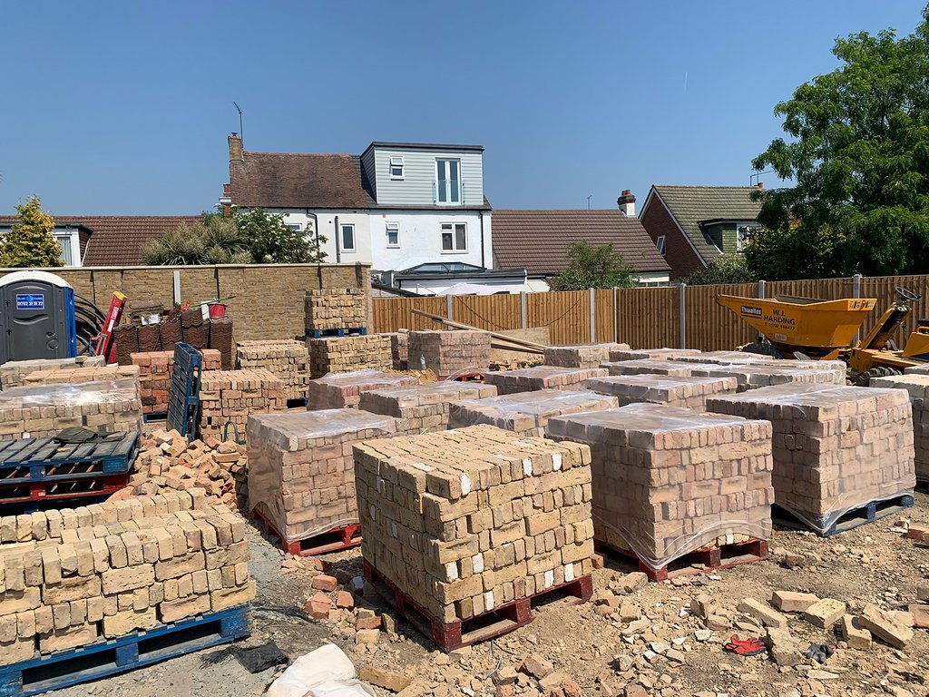 Reclaimed materials are hand-cleaned, removing old mortar and preparing them for reuse